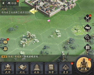 政务方面可执行以下操作:迁城(将主城或分城迁移至目标区域)、闭城(处于闭城状态时不会遭受攻击)、再起(重新选定地域,不过需放弃当前所有领地)。