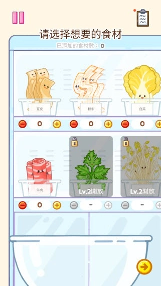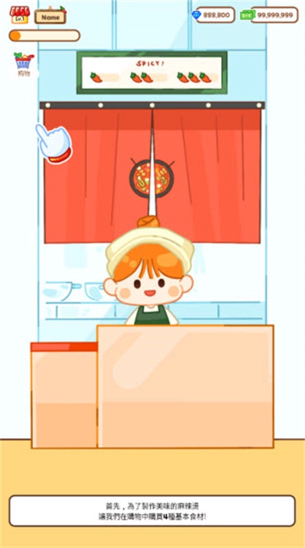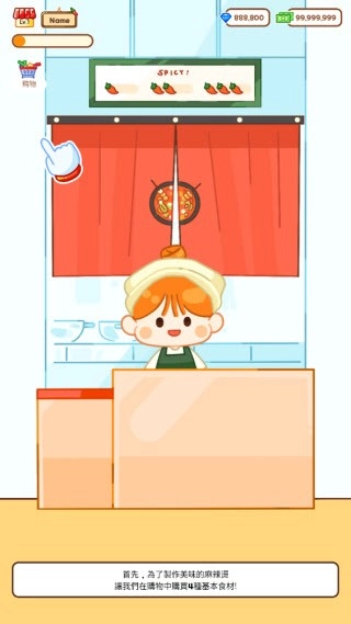 1、在当前页面完成游戏安装并打开。进入游戏后会有简易的新手引导环节,制作麻辣烫需用到4种基础食材,我们先进行采购。