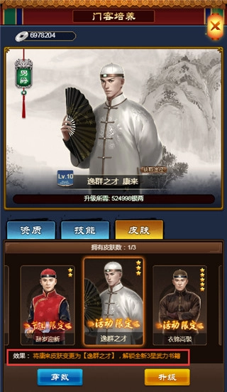 门客皮肤可以增加门客额外的资质