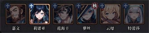 嘉文与云母能够提供护盾,二者配合可强化队伍的生存能力;范海辛不仅生存能力出色,还能削减敌方的治疗效果与效果抵抗;全体英雄都能施加【封印】效果,以此限制敌方英雄的行动,同时提升萝丝的输出;莉诺亚负责补充伤害,特蕾莎则为队伍提供治疗恢复。