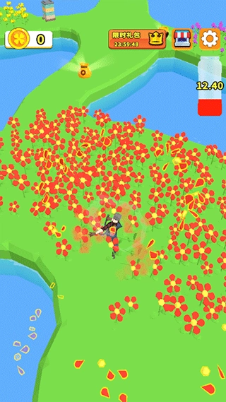 1、采集花蜜:通过滑动轮盘操控角色移动至草地,当角色靠近花朵时会自动进行收集,右上角的容器会实时显示采集进度,进度条填满后即完成该环节。