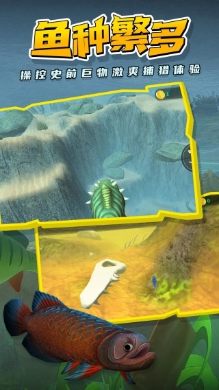 1、游戏内收录了从普通小鱼到史前巨物等丰富多样的鱼种设定,能为玩家带来极具冲击力的激爽捕猎体验。