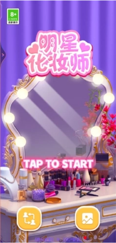 1、启动明星化妆师游戏的最新版本,左侧方块用于挑选待化妆改造的角色,右侧方块为相册区域,化妆完成后拍摄的照片会在此呈现,点击“TAPTOSTART”即可开始游戏。