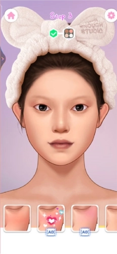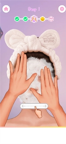 3、step1,根据顶部指引完成面部清洁步骤。