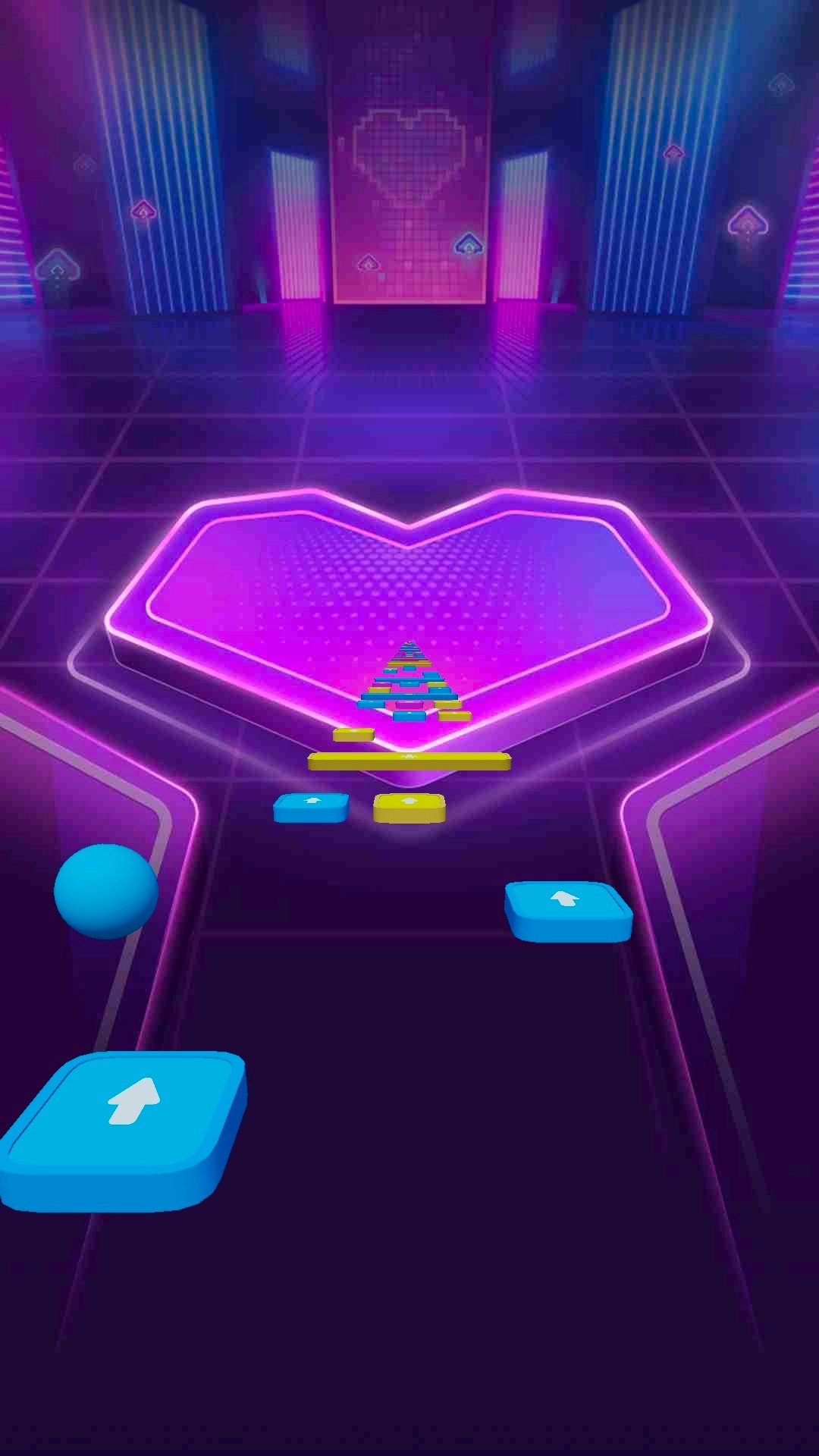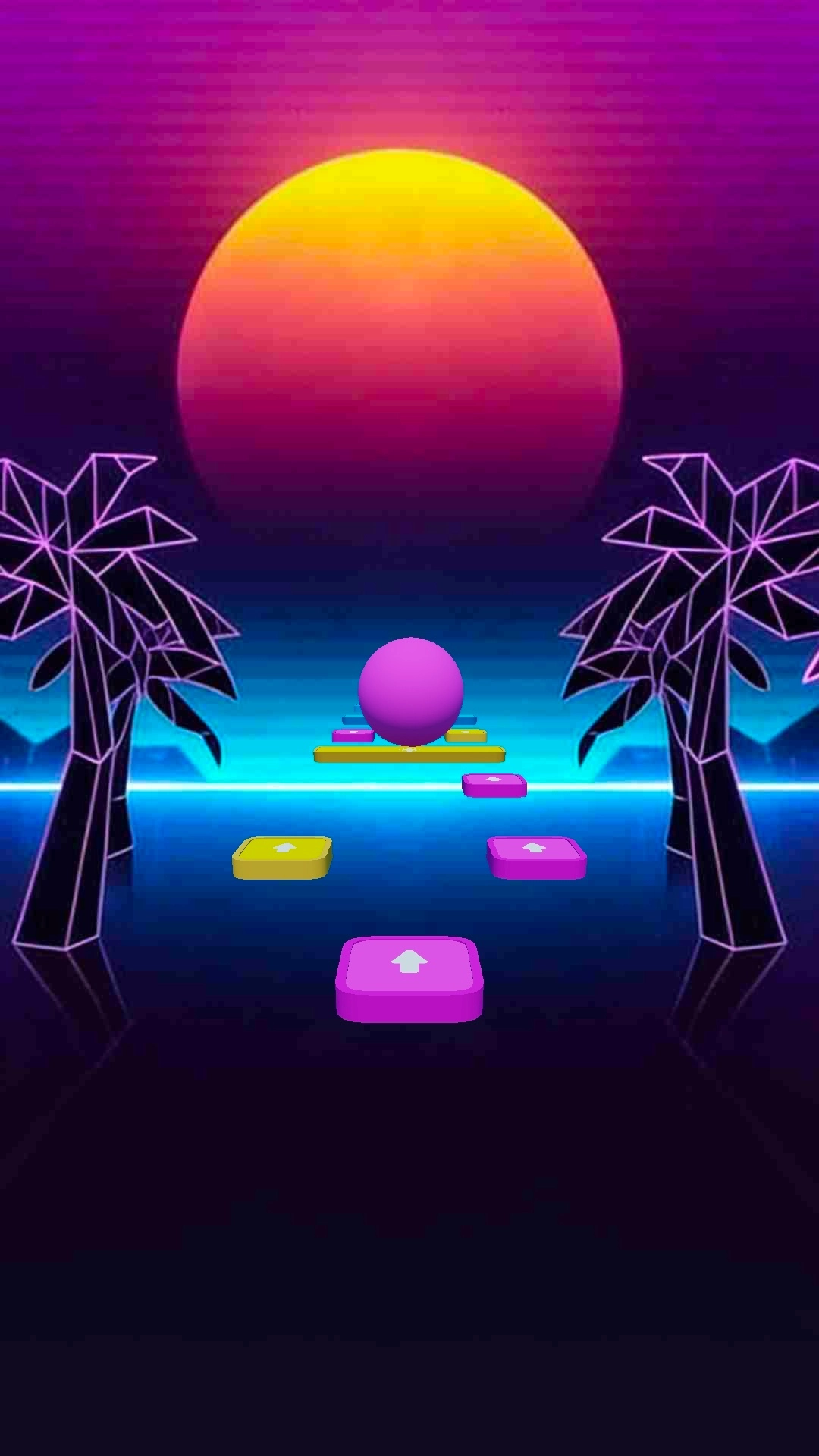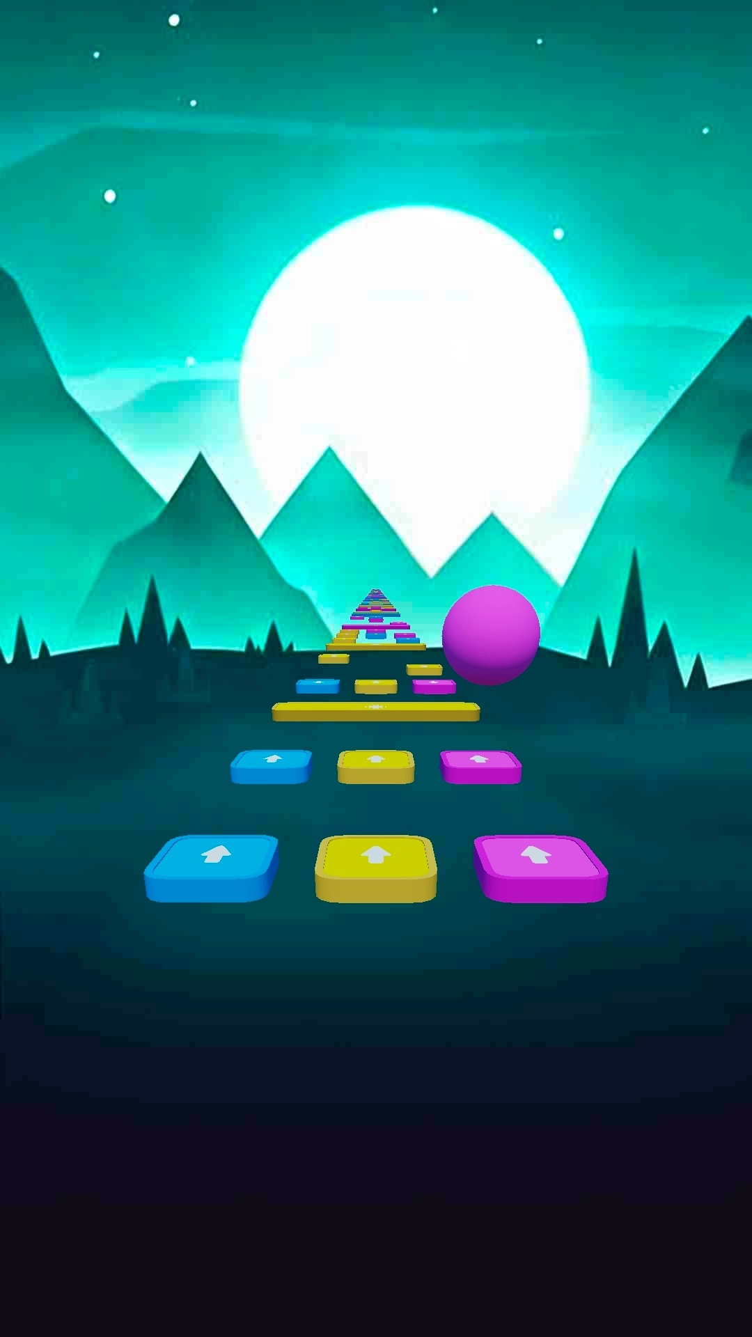 1、以音乐节奏为核心驱动力,玩家通过左右滑动操作控制球球,使其精准落到对应颜色色块,完成整首歌曲的闯关挑战。