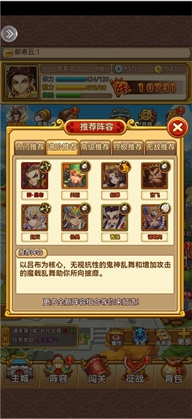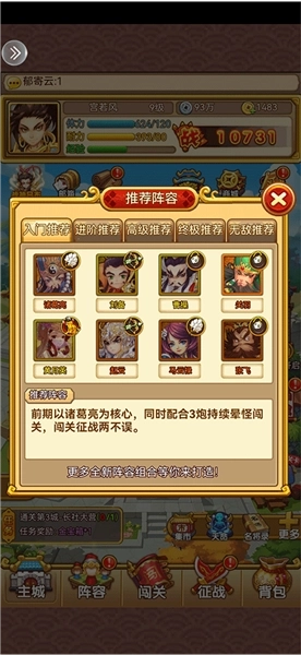 前期以诸葛亮为核心,同时搭配3炮持续晕怪闯关,闯关征战两不误