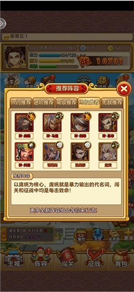 6、努力学习推图吧,推图有银币有金币有将魂,推图前4章通用3炮3军1法1弓(3炮2军2法1弓)都可以;第5章后需要3弓3法,但是离你们还很遥远,所以之前就那个组合就好,炮升级晕炮,弓升级弩,法升级冰法,军升级电