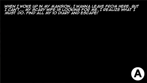2、剧情梗概:“当我在自己的豪宅里醒来时,我一心想离开这个地方。可我没办法脱身……我那令人害怕的妻子正在搜寻我,这时我终于明白自己必须要做的事——找到我那10本日记,然后逃出去!”点击A键继续。