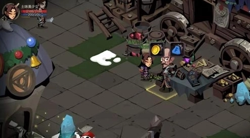 2、他看上去好像谁都欠了他钱似的,但实际上他是来给大家送福利的~大家可以在他的头顶找到符文工坊和金矿的入口。接下来,小编就以金矿为例,给大家介绍一下家园的新玩法。