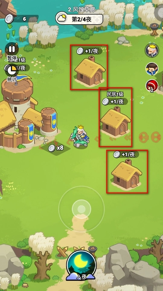 游戏前期的第一夜和第二夜通常比较安全,建议优先积累经济、升级民房,把经济提升到10块以上。