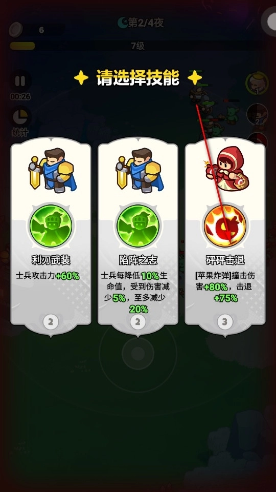 中期主要升级部署骑士优先升级小兵抗伤堆人数
