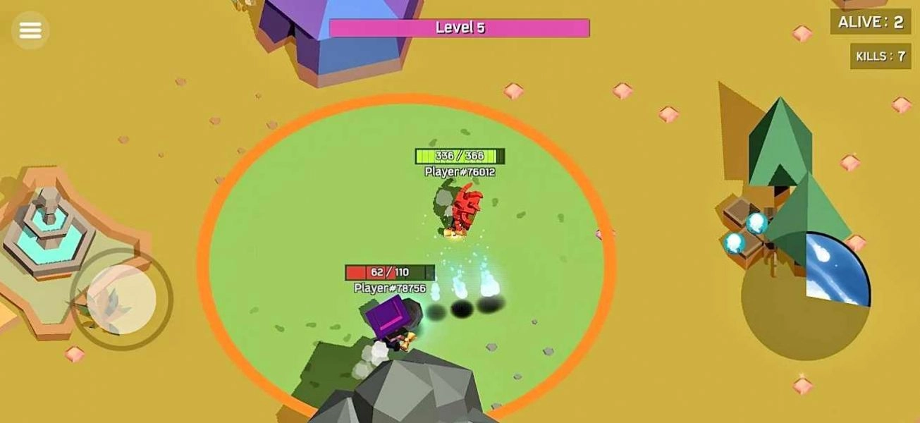 《法师大逃杀》为你呈现一场妙趣横生的法师大乱斗!进入对战后,玩家会随机降落在地图的某个角落,得持续收集各类道具来推动自身进化——每完成一次进化,都会出现三个能力选项供你挑选其一,借此一步步强化实力,才能在这场混乱激烈的战斗里更好地存活下来。快加入《法师大逃杀》,开启你的战斗之旅吧!