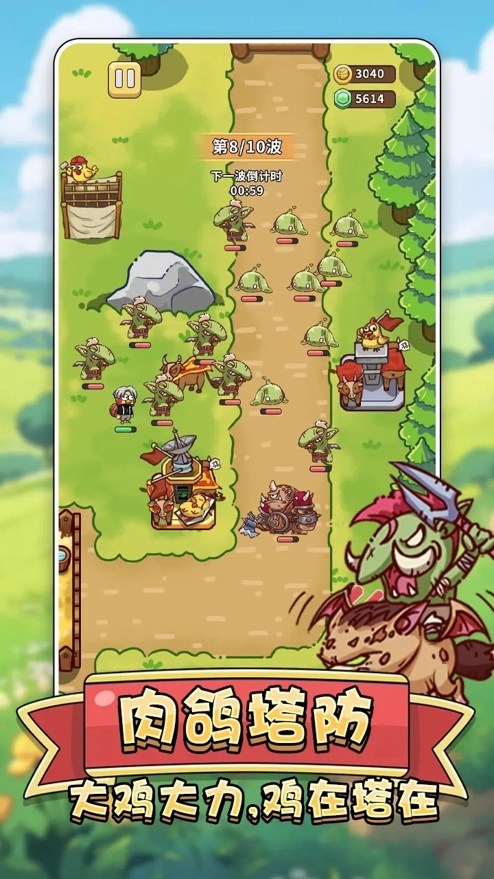 2、肉鸽塔防,大鸡大力,鸡在塔在!