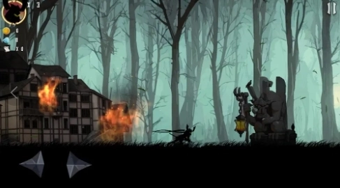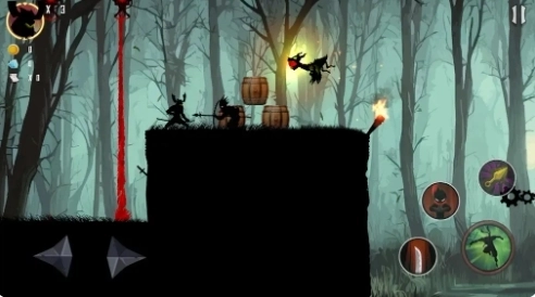 4、你要穿越危机四伏的森林,渡过湍急的河流,去营救被困的伙伴,整体是黑暗的游戏风格。