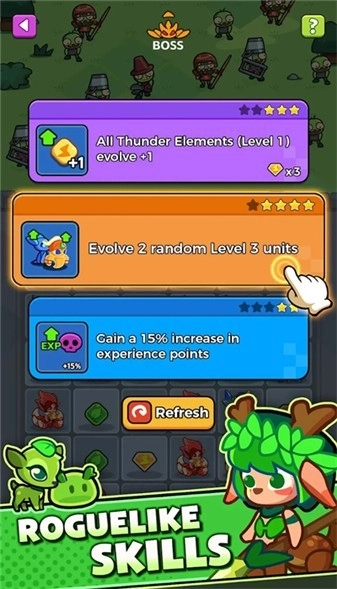 2、借助升级与进化,增强更多史莱姆英雄的战斗能力,构建专属的防御阵容。