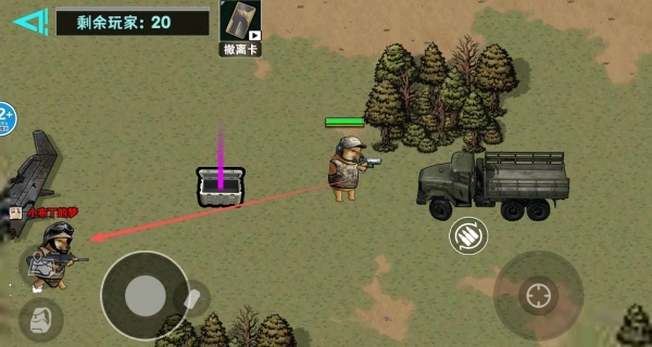 1、进入战场后,要主动去寻找场景里的各种资源,靠近物资时点击就能将其拾取。
