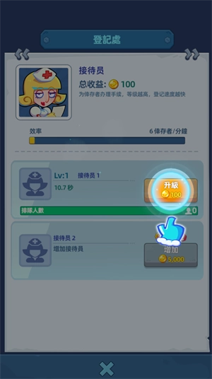 1、玩家需对员工进行升级,以此提升收容避难者的效率