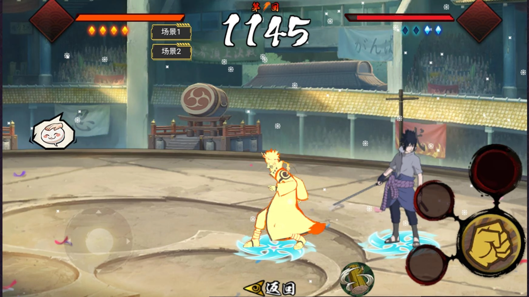 1、可选用的角色数量不少,每个角色的招式都高度还原原作,操作方式也十分简单,很容易就能掌握上手。