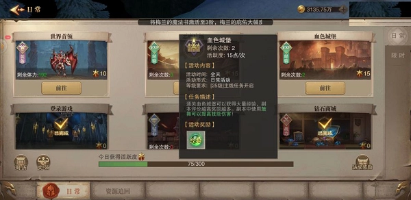 游戏里每日的任务活跃度宝箱和特殊任务都能让大家拿到一些钻石,大家可以根据任务要求去完成来赚取钻石哦。