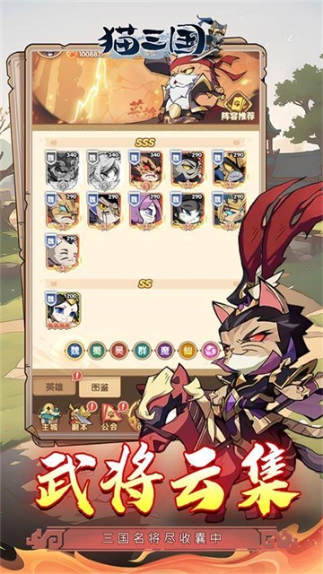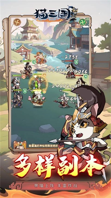 在战斗方面,游戏采用经典的回合制作战方式,玩家应该根据敌人特点和自身的战略策略,合理安排武将的出站顺序和技能释放顺序,才能在面对强敌时获得胜利。除了战斗系统,猫三国手机游戏还提供了大量的副本活动,玩家可以挑战各种难度的副本,以此来获得额外的资源奖励。对此感兴趣的朋友快来体验吧!