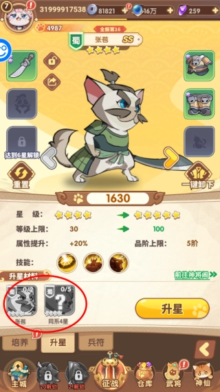 4、升星界面可以突破武将的星级