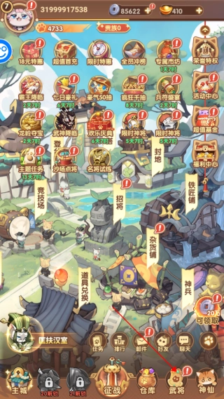 1、点击武将进入武将系统