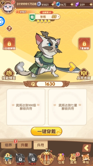 5、兵符界面可以大幅提升武将实力
