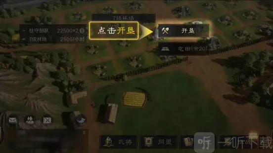 派遣部队开垦内城的资源地,可使队内武将获得经验。