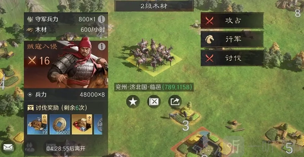 派遣部队讨贼城外大地图的贼寇,可使队内武将获得少量经验。