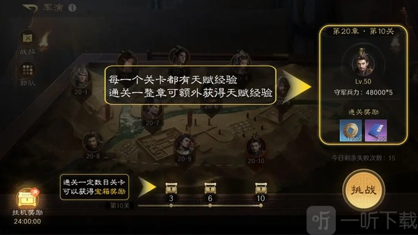 3.每通关一整章,第3个关卡宝箱中可以获得天赋经验。