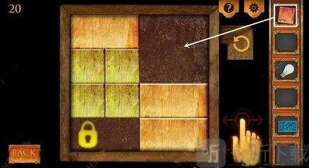 七、接着点击屋子的窗户,把刚刚获取的木块放置进去,通过滚动使钥匙移动到锁的位置,完成挪动后就能进入木屋。