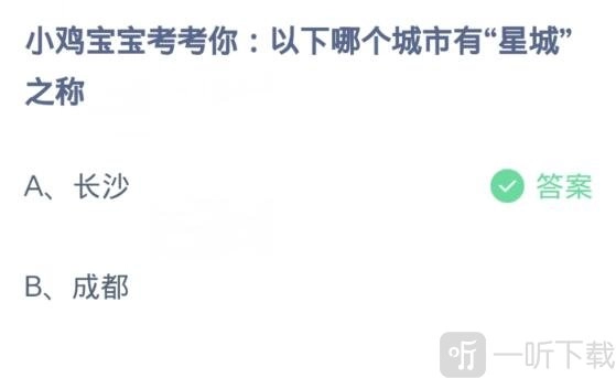 解析:星城乃是长沙市的别称。长沙之所以会被称作星城,原因在于长沙的上空存在一颗名为长沙星的星星。