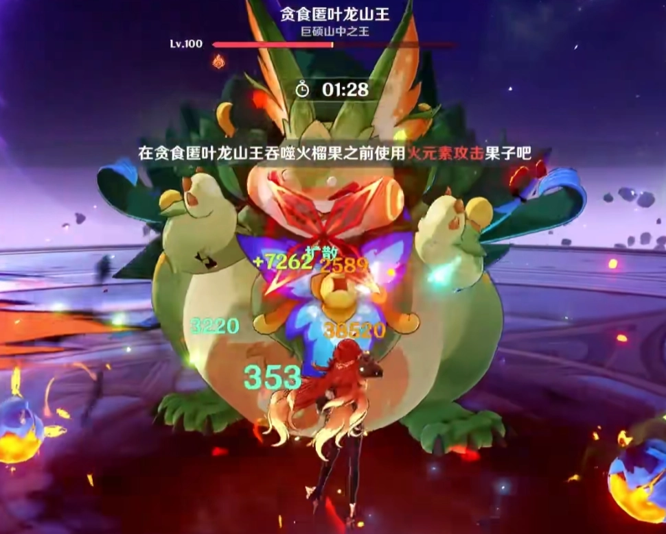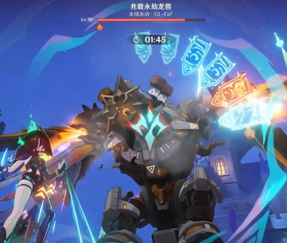 飞天龙兽。它起身时抗性会提升100%,这时候别着急输出,优先叠加buff和挂元素。开局拿到的恰斯卡一定要留到这一关用——首先恰斯卡能对空输出就是个很大的优势,退一步说,它本身也是弓箭角色,就算不打伤害,也能通过机制射下龙兽来制造输出机会。