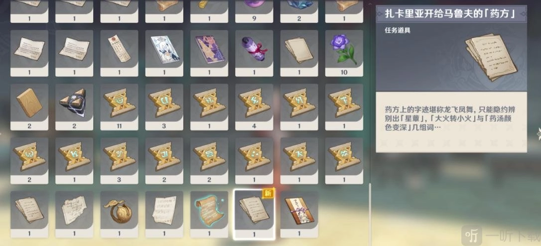 2、传送到须弥城,与扎卡里亚展开对话,从他那里获取药方。此处共有三种药方,随机刷出哪种,便依照哪种药方的要求进行制作。只要正确调配药方,就能获得隐藏成就:医用笔迹。