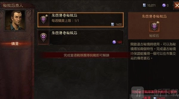 接着,在钥石商人那里能够解锁闪光强化不朽钥石的购买权限,其售价为1600。该物品可在不朽秘境中使用,使用后必定会掉落符文以及可用于交易的传奇宝石。