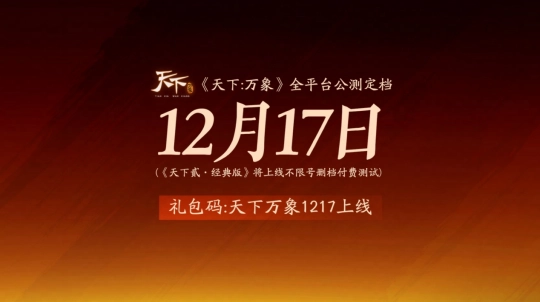 12月17日,《天下贰·经典版》将进行第三次测试,欢迎各位少侠持续关注和参与!经典版本天下贰的未来,由你们来决定!