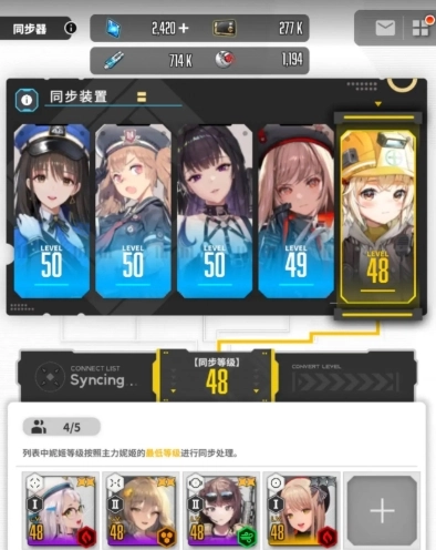 在游戏主线持续推进的过程中,重要道具同步器会逐步解锁。同步器作用关键,它依据玩家队伍里等级最高的5个角色的等级,来提升放置于同步器中的其他角色等级。这对于低氪和无氪玩家而言,是提升角色等级的绝佳机会。当玩家达到80级,可借助重置功能,先重置已升级好的SSR角色,接着升级SR角色,再通过同步器把等级同步给尚未突破的SSR角色,进而达成突破80级的目标。
