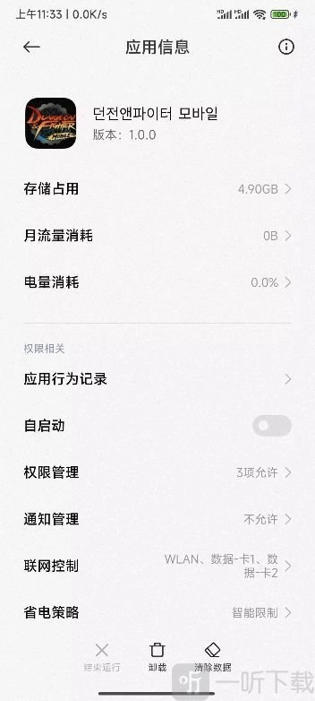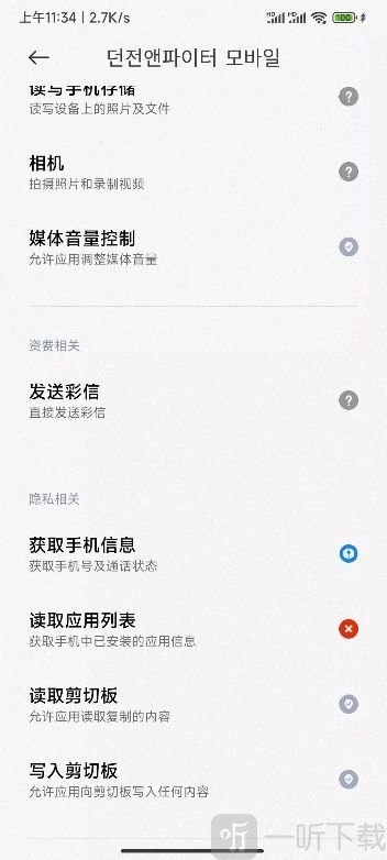1、依次点击“设置”-“应用设置”-“授权管理”-“应用权限管理”,在其中查找“던 전앤파이터 모바일”(DNF手游韩文名称),也可以通过图标来辨认。