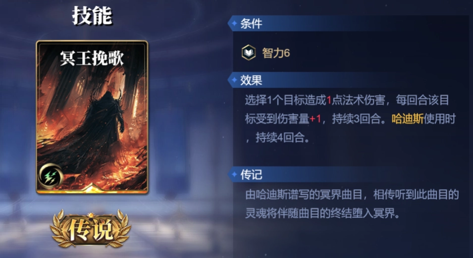 与之类似的还有“冥王挽歌”这张卡,在打出的当回合,其1点法术伤害的来源为奈芙蒂斯,然而从下一回合起,每回合的法术伤害来源则变为对手自身。
