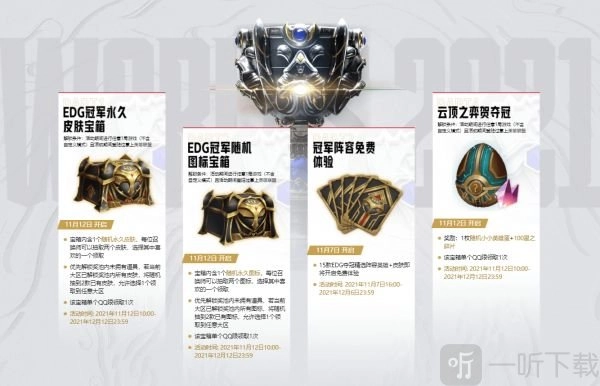 为庆祝EDG战队夺冠,《英雄联盟》给广大召唤师们送上了一波超丰厚的福利!今日,部分活动已开启,福利众多,皮肤便是其中之一,想必不少小伙伴都格外关注。关于具体的领取方式及正式时间,下面小编为大家做了详细整理,大家可自行浏览查看!