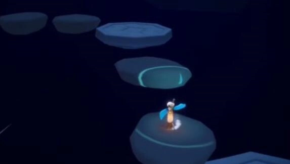 3、最后,我们顺着台阶寻找小金人平台,只要留意光圈别掉下去,就能找到灯泡先祖。