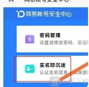 4、最后,在跳转的页面里,点击选择“实名防沉迷”选项,这样就能在即将跳转的页面中,对已绑定的未成年账户进行换绑操作。