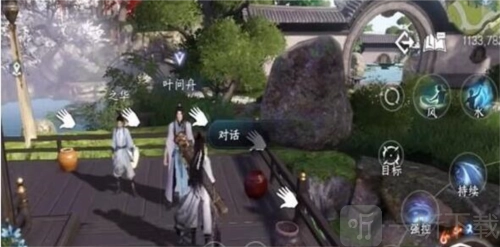2. 跟师兄交谈,运用水技能把瓶子装满水。