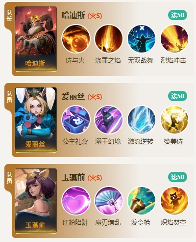 玉藻前全速加点,先手给虚弱和燃烧,爱丽丝携带【激流逆转】和【赞美诗】打出双控,哈迪斯叠加伤害,控制能力和输出能力全部拉满。