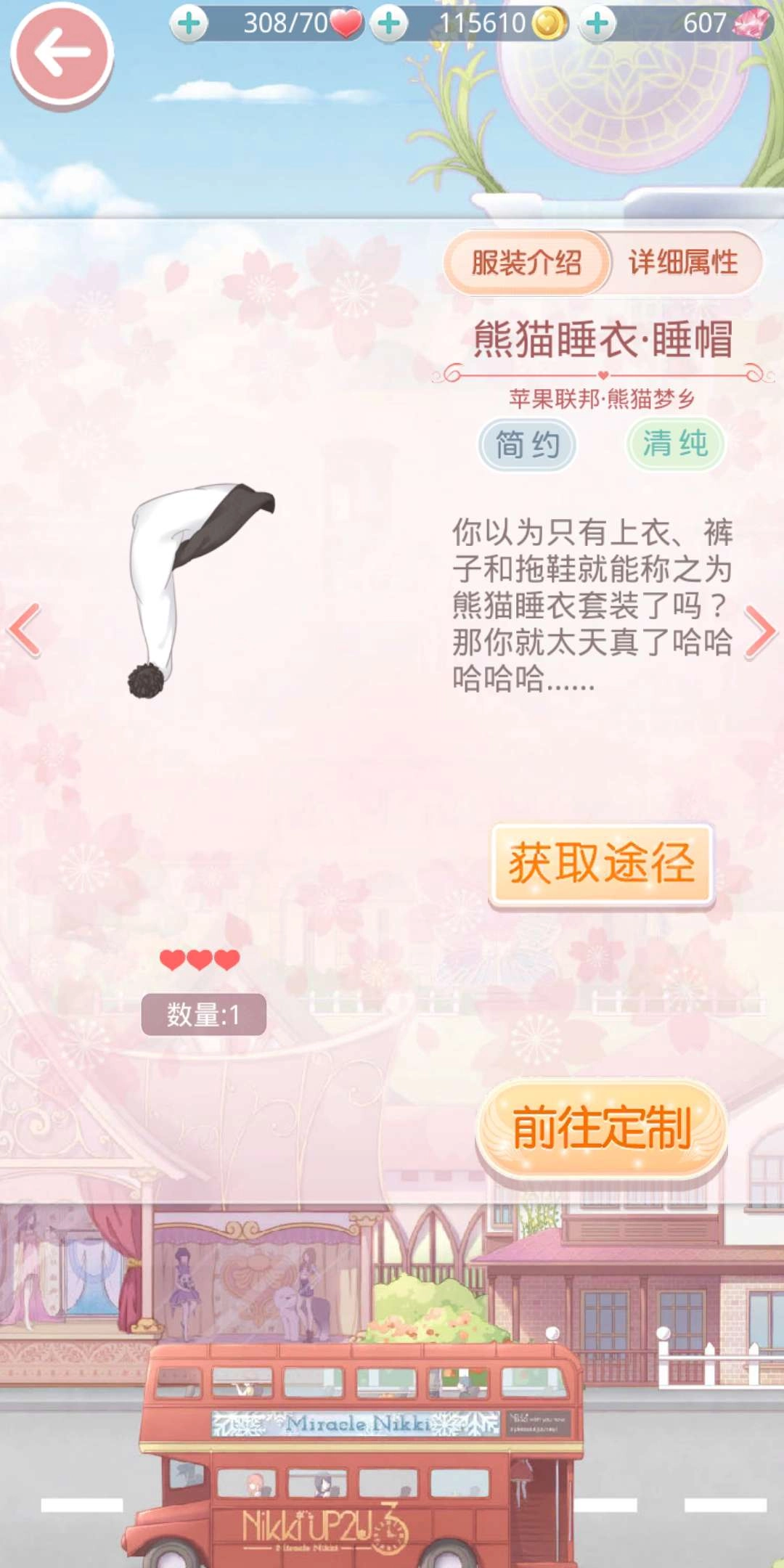 饰品:熊猫睡衣·睡帽(三星简约&清纯。设计图制作获得)