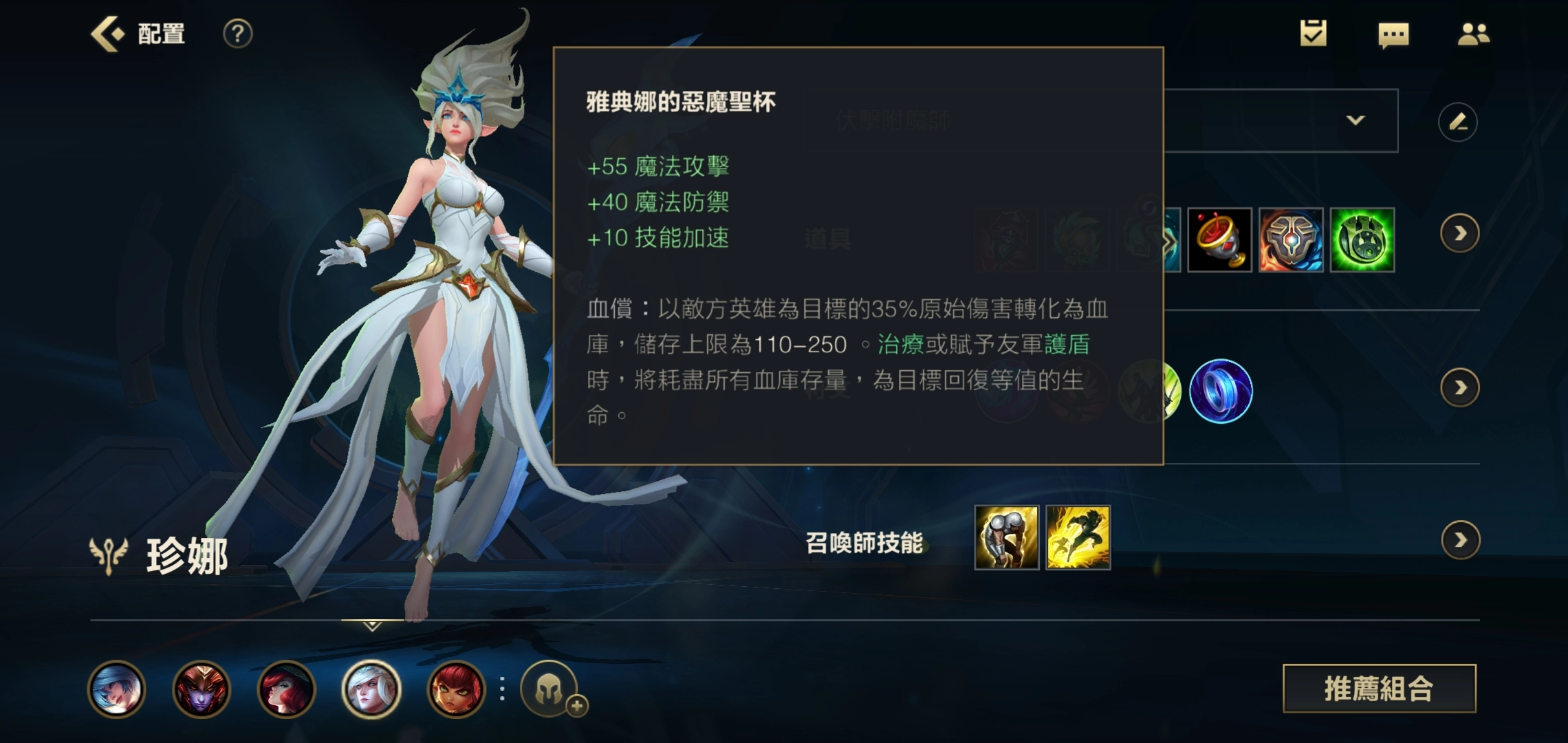 第四件装备选择圣杯是个不错的思路,它不仅能提升我们为队友提供的恢复效果,还具备技能急速属性,能让我们更频繁地释放技能。