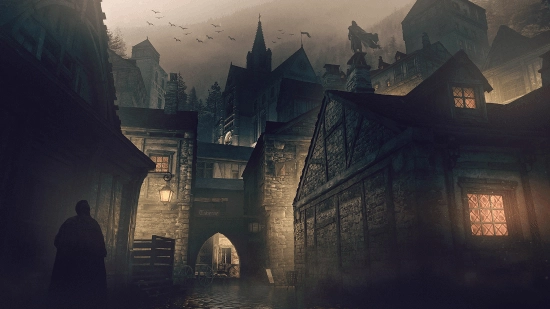 ·游戏在城市的鹅卵石街道上描绘了一个黑暗和阴郁的场景。