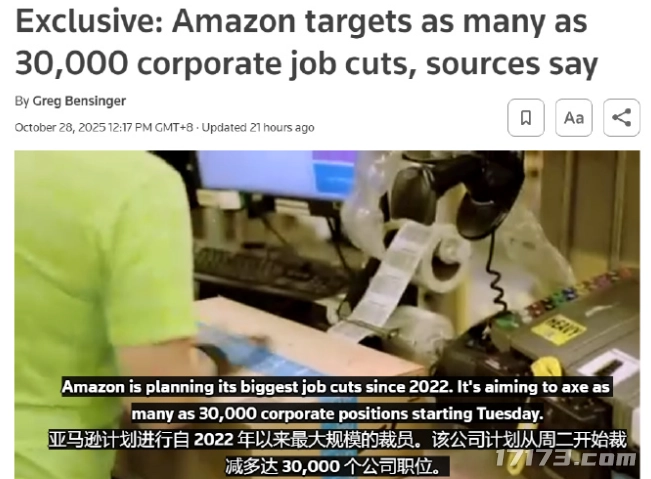 10月底,路透社传出消息称,亚马逊正计划启动新一轮大规模裁员,涉及人数高达3万人,将成为自2022年底裁员约2.7万人以来,其历史上最大规模的一次人员收缩。
