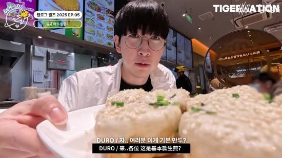 赛后有玩家留意到,在昨日(10月31日)GEN官方账号发布的Vlog视频里,辅助选手Duro呈现了一段自己品尝小杨生煎的画面。
