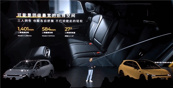 二排肩部空间达到1401毫米,比Model 3更宽,二排的腿部空间达到580毫米领先对手,二排靠背角可达27度,超过很多豪华品牌的SUV。
